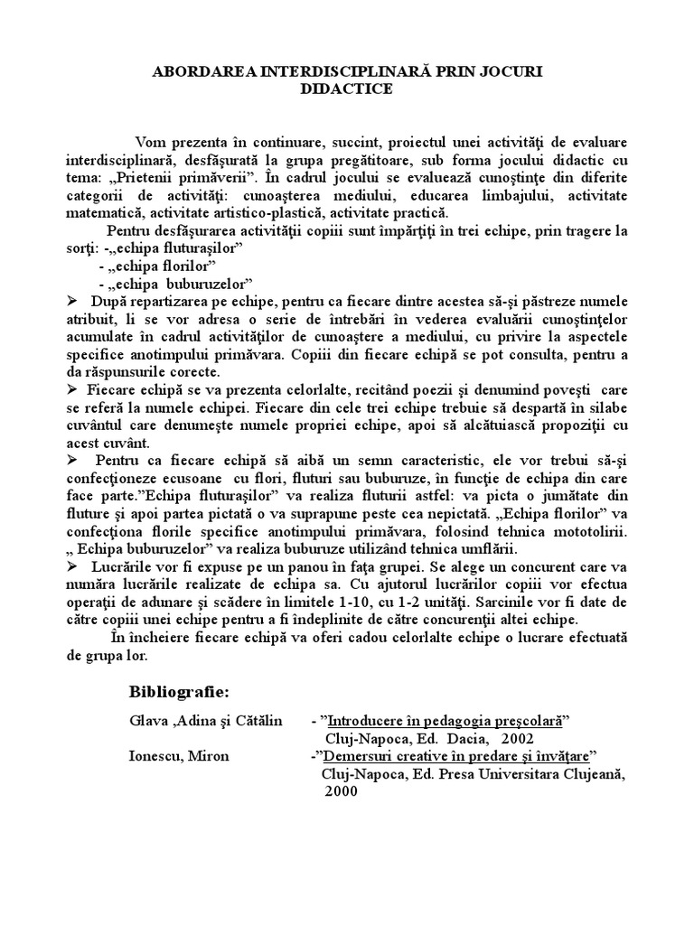 Abordarea Interdisciplinară Prin Jocuri Didactice