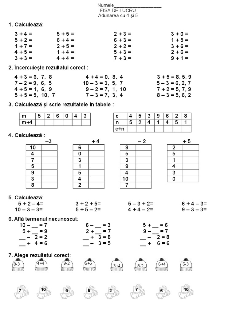 Adunarea Si Scaderea Cu 5 Clasa Pregatitoare
