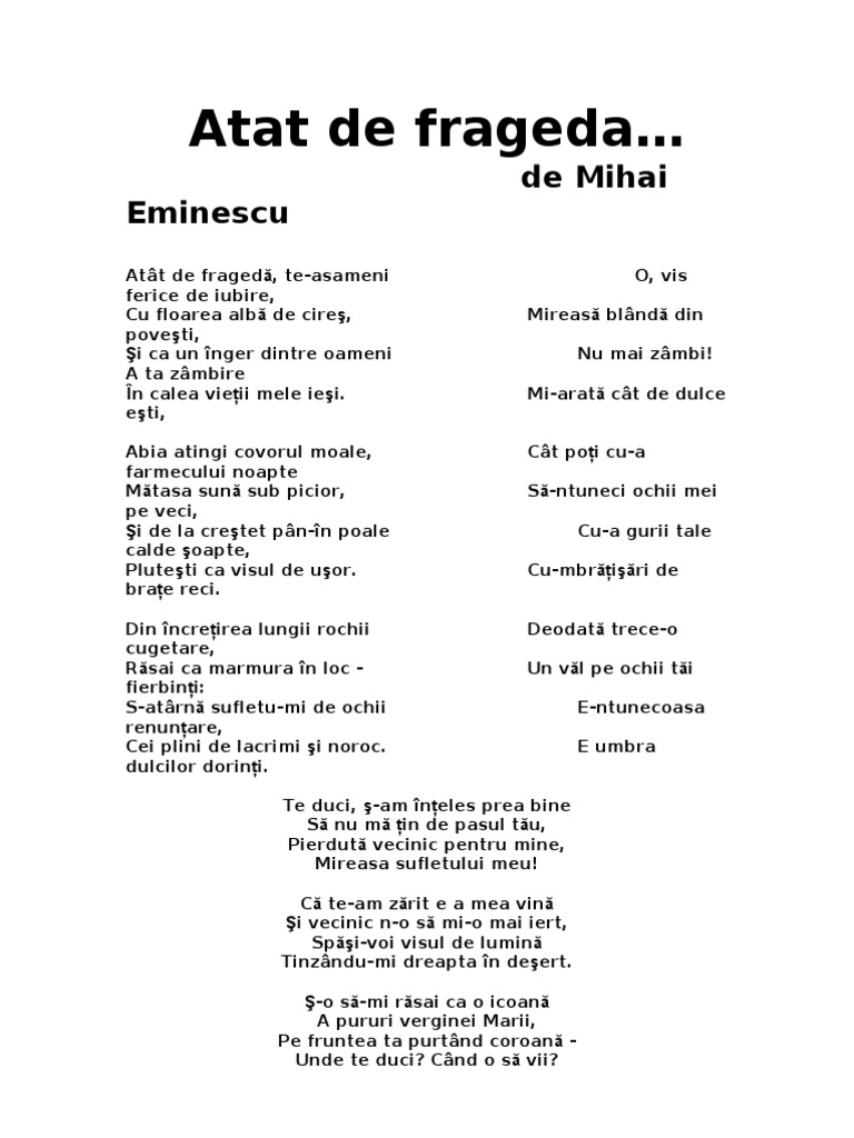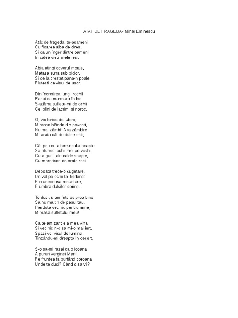 Atat De Frageda De Mihai Eminescu