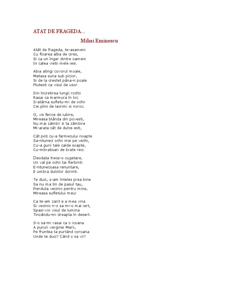 Mihai Eminescu Atat De Frageda