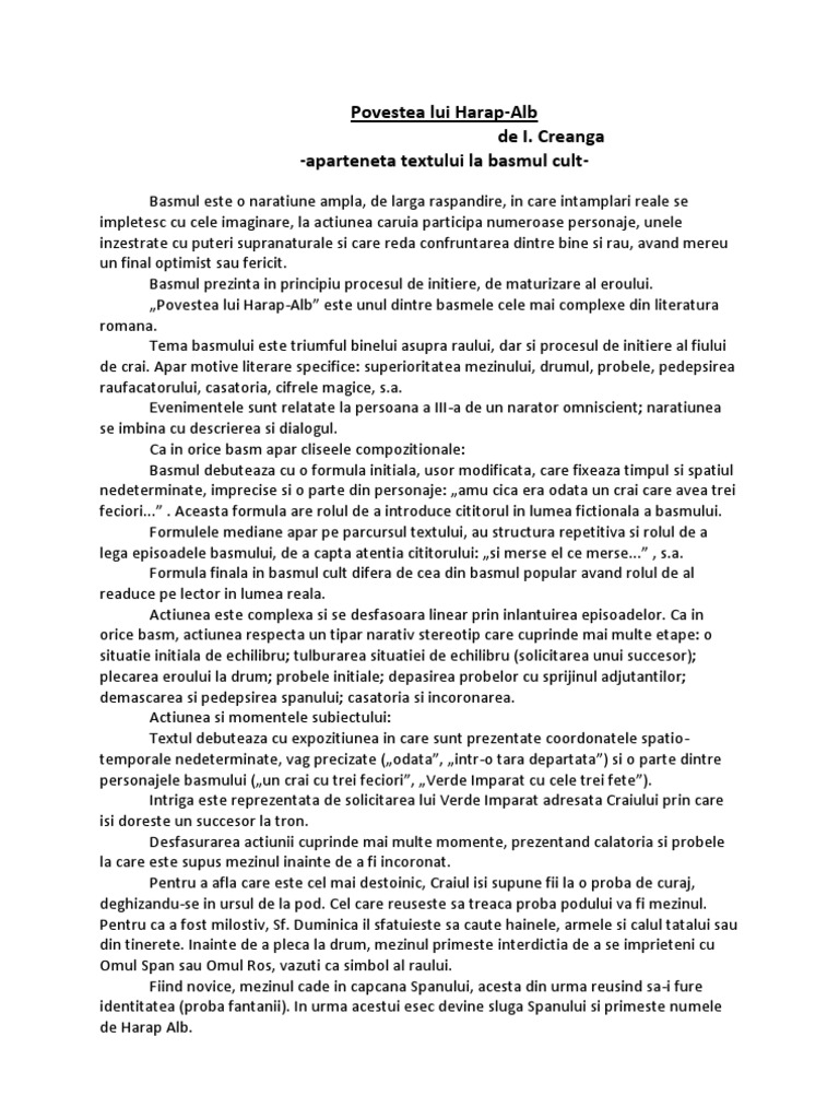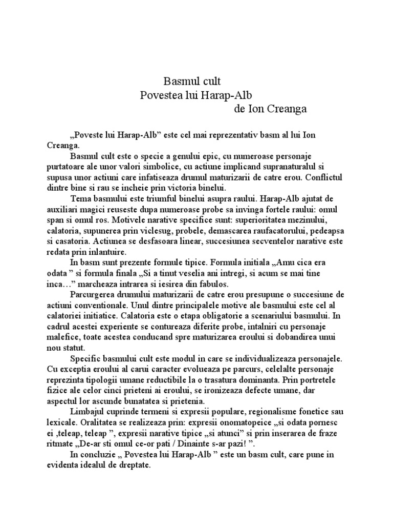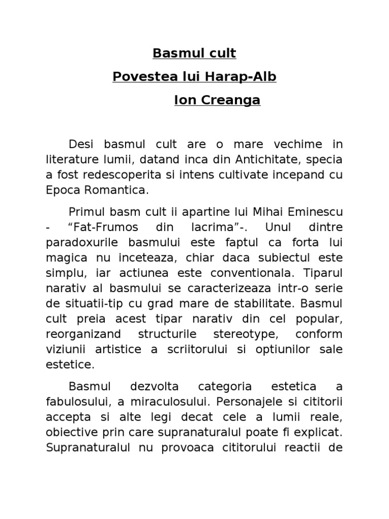 Referat Povestea Lui Harap Alb Demonstratie Basm Cult 135602 Graduo