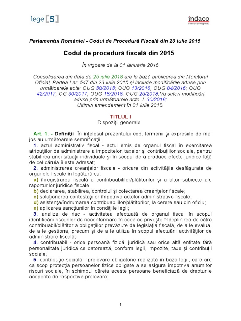 Legea Nr 207 2015 Codul De Procedura Fiscala Actualizat August 2017