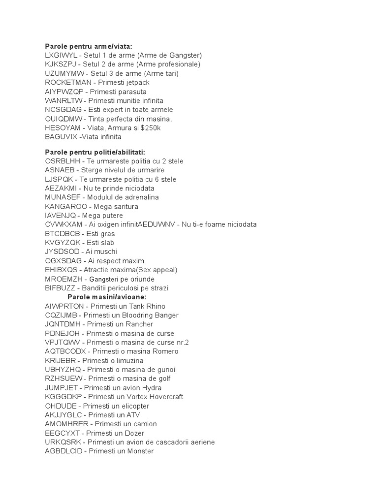 Coduri Gta Romania 2