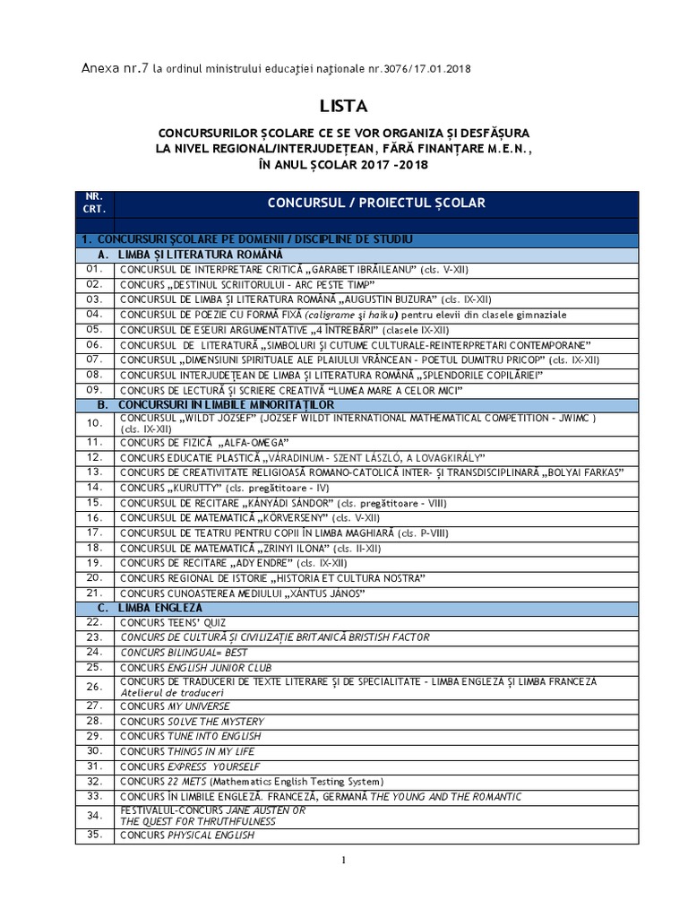 Anexa Nr 7 La Omen Olimpiade Si Concursuri Scolare 2018