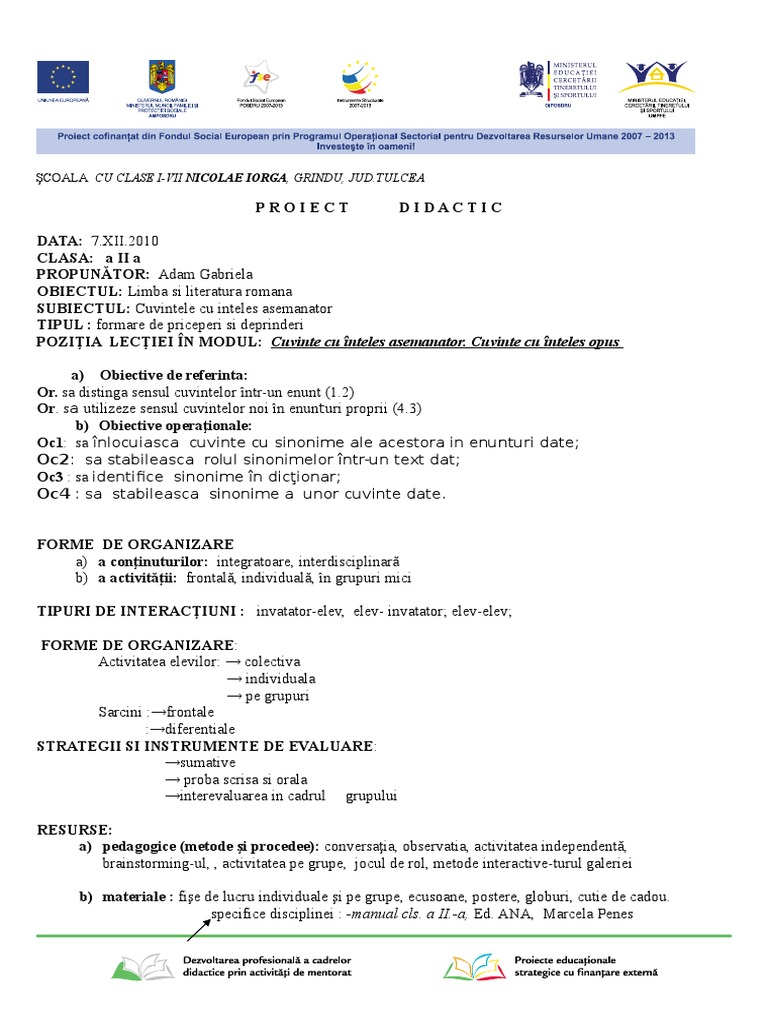 Adam Gabriela Proiect Didactic Clasa A Ii A