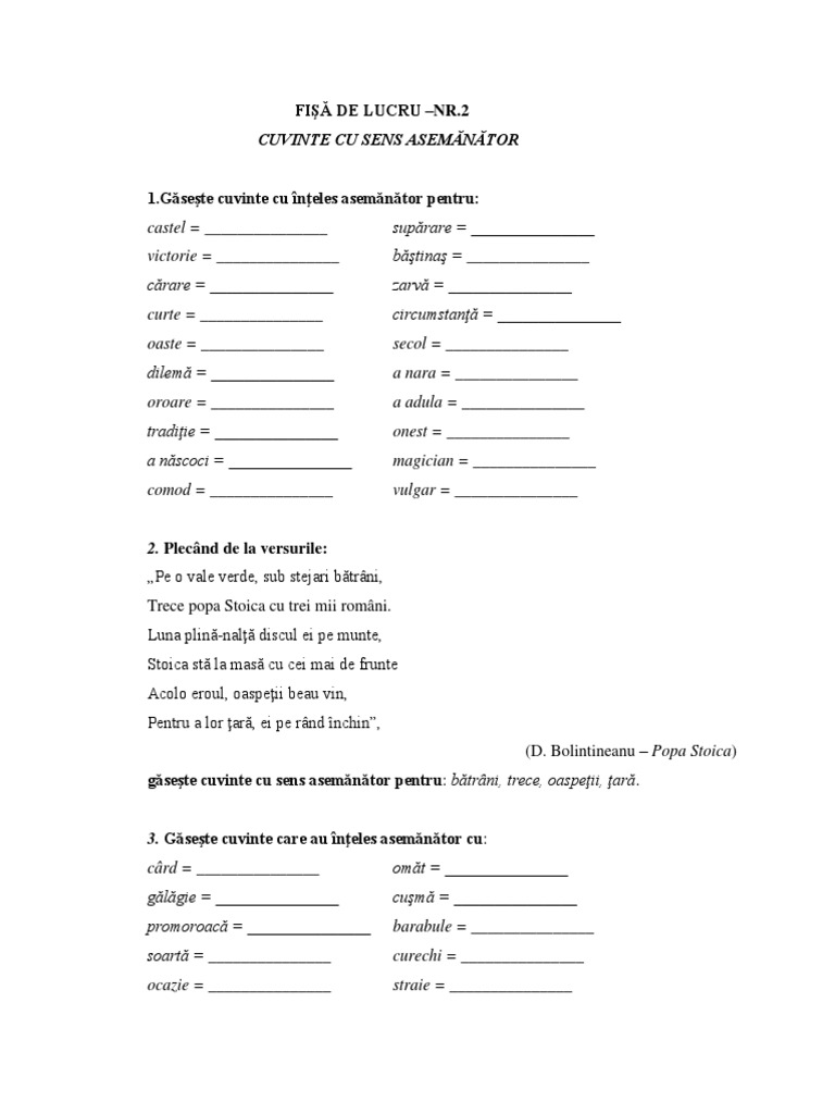 Cuvinte Cu Inteles Asemanator Clasa A 2
