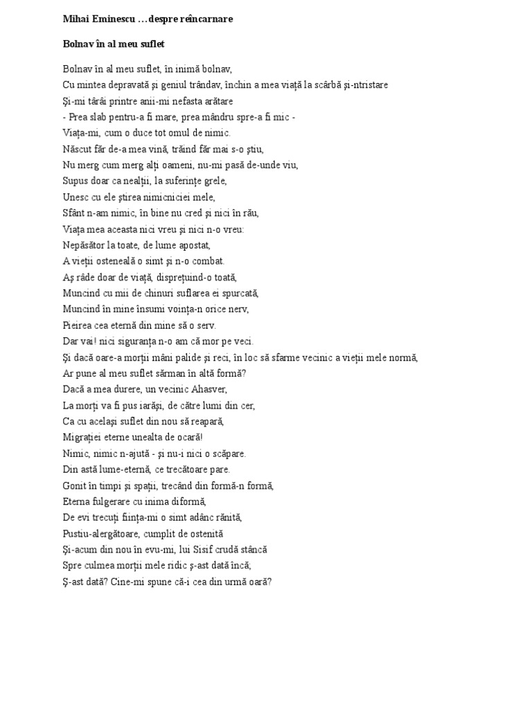 Bolnav In Al Meu Suflet Mihai Eminescu