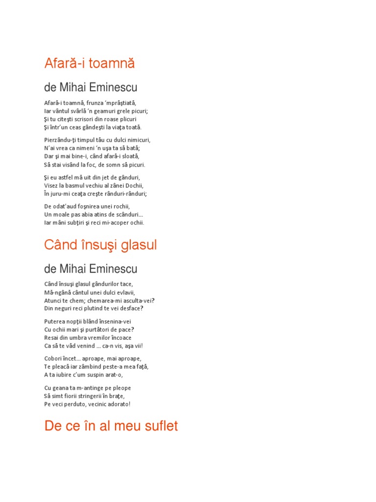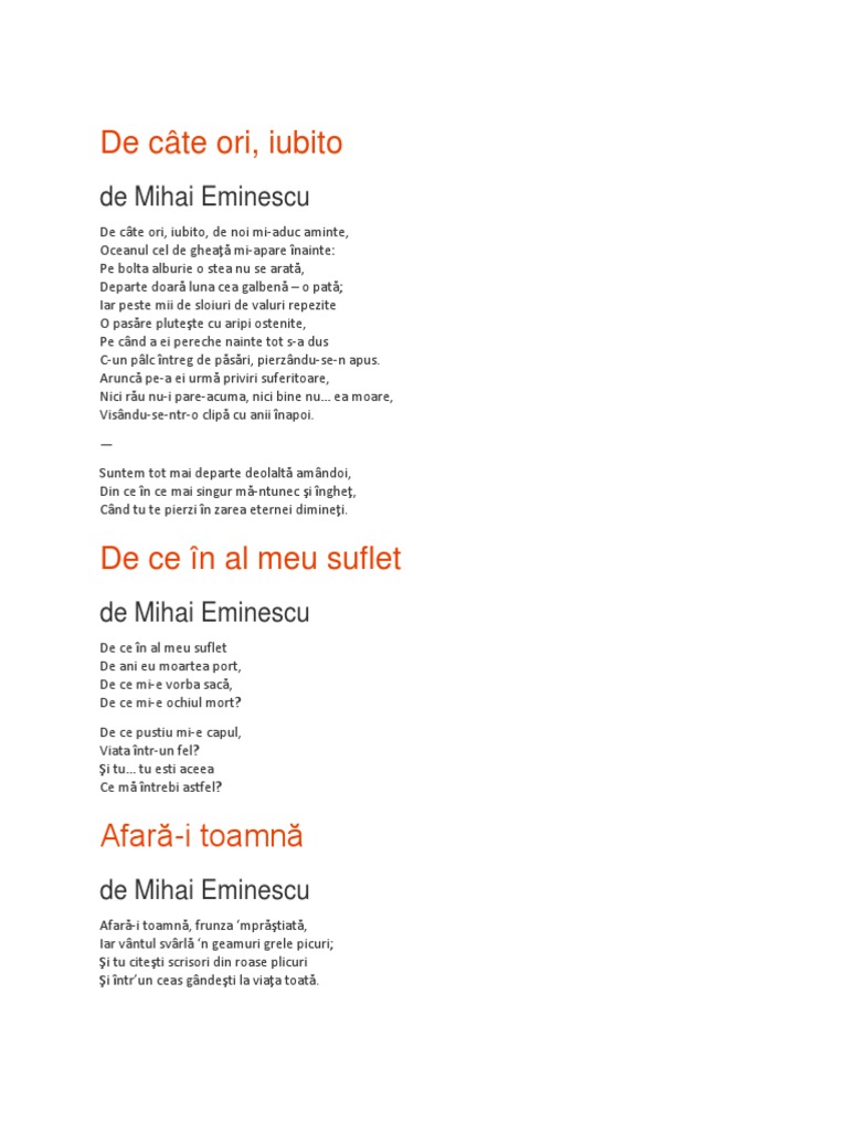 Speranta Mihai Eminescu De Ce In Al Meu Suflet