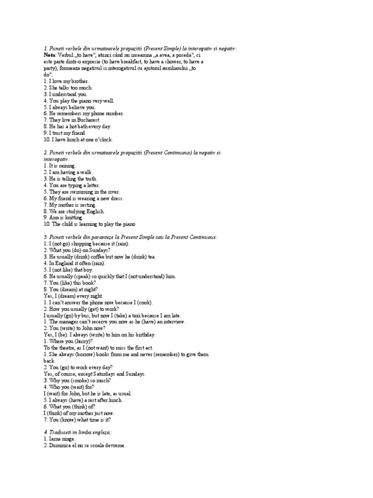 Exercitii Cu Present Simple Si Present Continuous Grammar Style Fiction