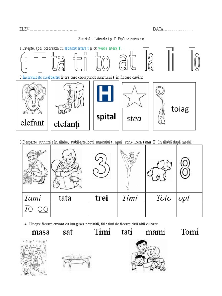 Fișă De Lucru Sunetul și Literele T și T Clasa Pregătitoare Materiale Didactice De 10 Zece