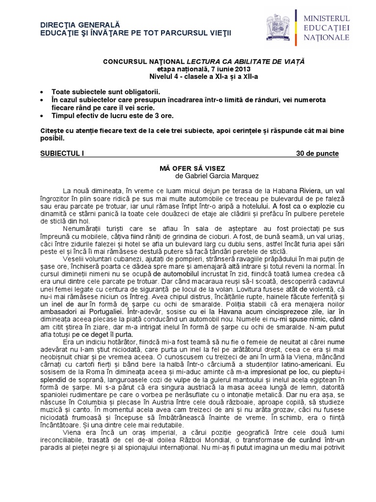 Lectura Ca Abilitate De Viata Subiecte 2012