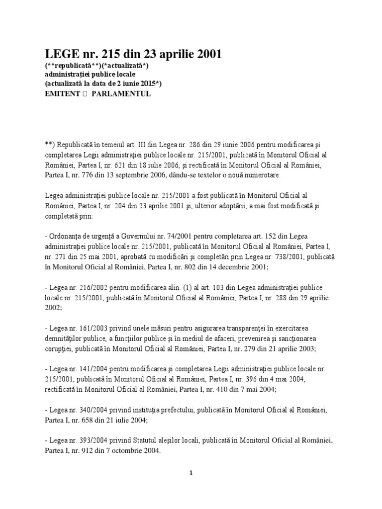 Lege 215 Din 2001 Actualizata 2018