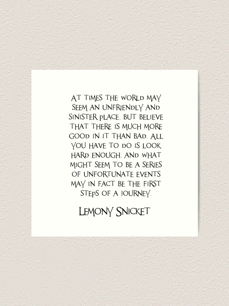 A Series Of Unfortunate Events Journey Quote Lemony Snicket Good Vibes Culture Art Style Black And White Art Print By Avit1 Redbubble