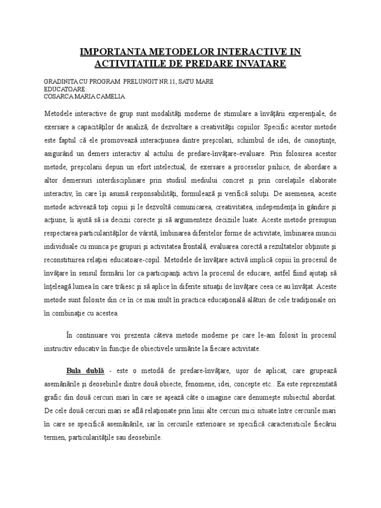 Importanta Metodelor Interactive In Activitatile De Predare Invatare