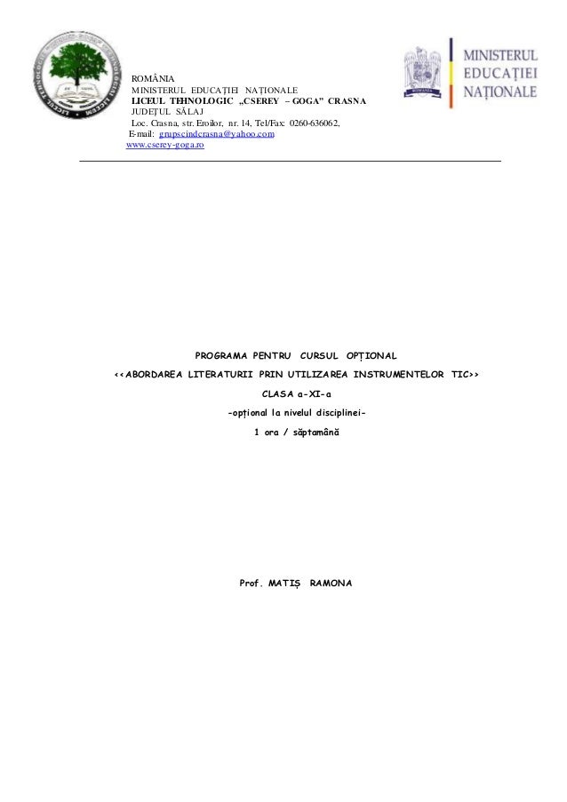 Fișa De Avizare A Proiectului De Programă Pentru Opțional Inspectoratul Scolar Judetean Olt