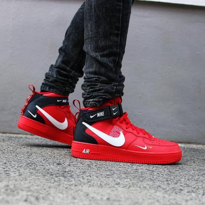 Promo Nike Air Force 1 Mid 07 Lv8 Utility University Red White Black High Quality Shopee Indonesia