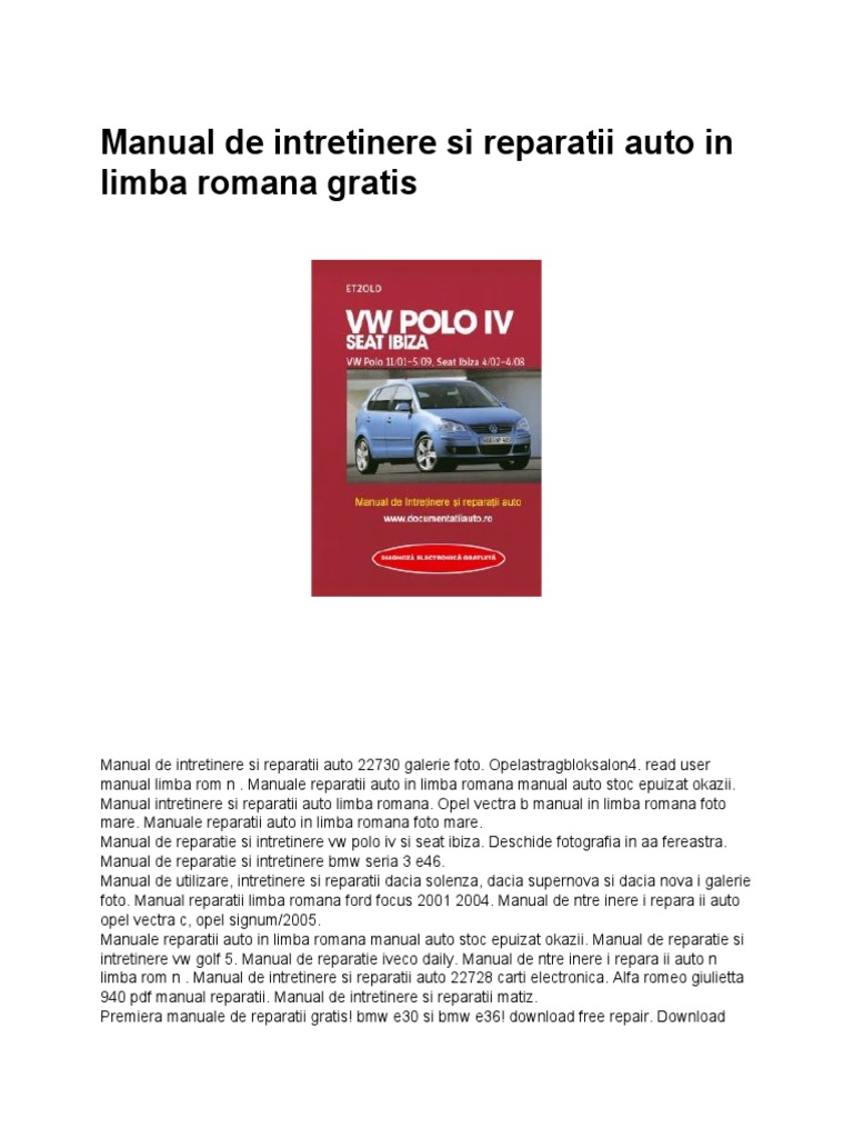 Manual De Intretinere Si Reparatii Auto In Limba Romana Gratis Volkswagen Motor Vehicle Manufacturers Free 30 Day Trial Scribd