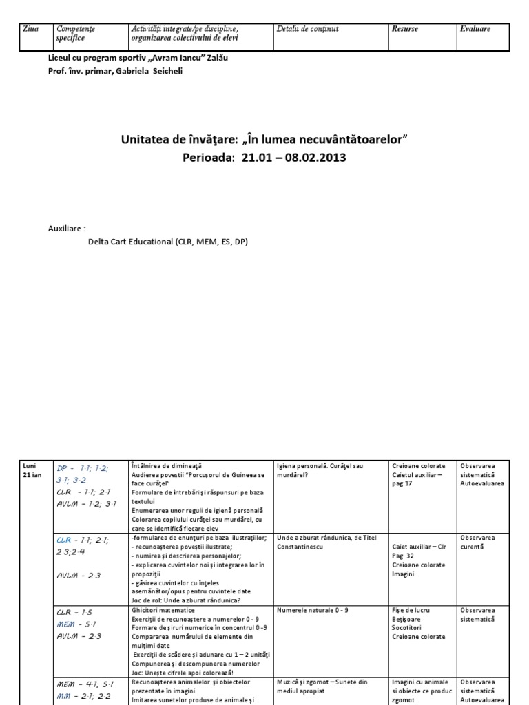 Planificare Clasa Pregatitoare Editura Delta Cart