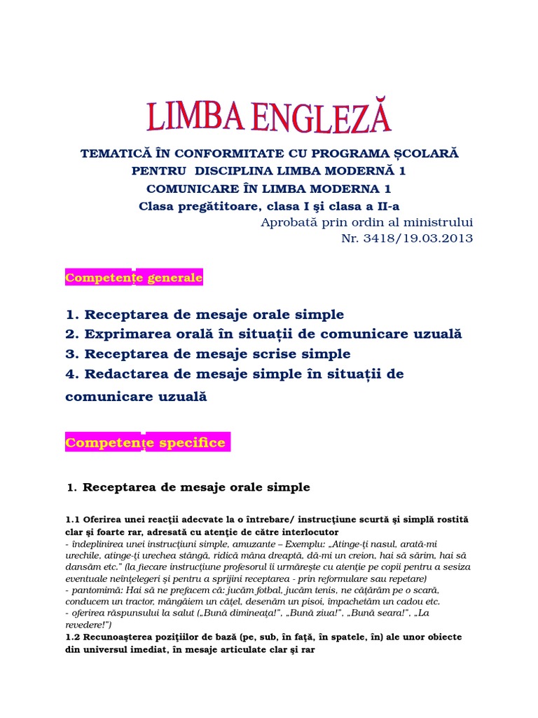 Teachers Of English On The Buzau Valley Programa Limba Engleza Clasa Pregatitoare I Ii