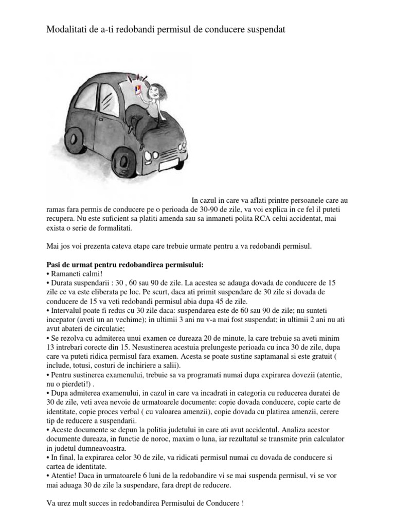 Redobandire Permis De Conducere Auto Suspendat Odat Ro
