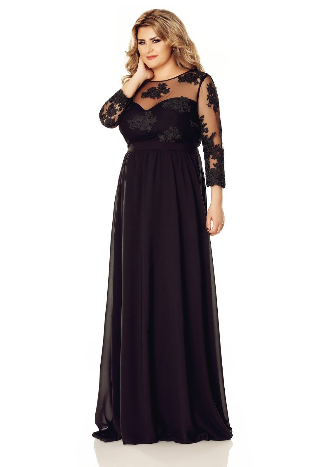 Rochie Lunga Neagra De Seara Pentru Femei Plinute Caelia Rochii Talya Ro