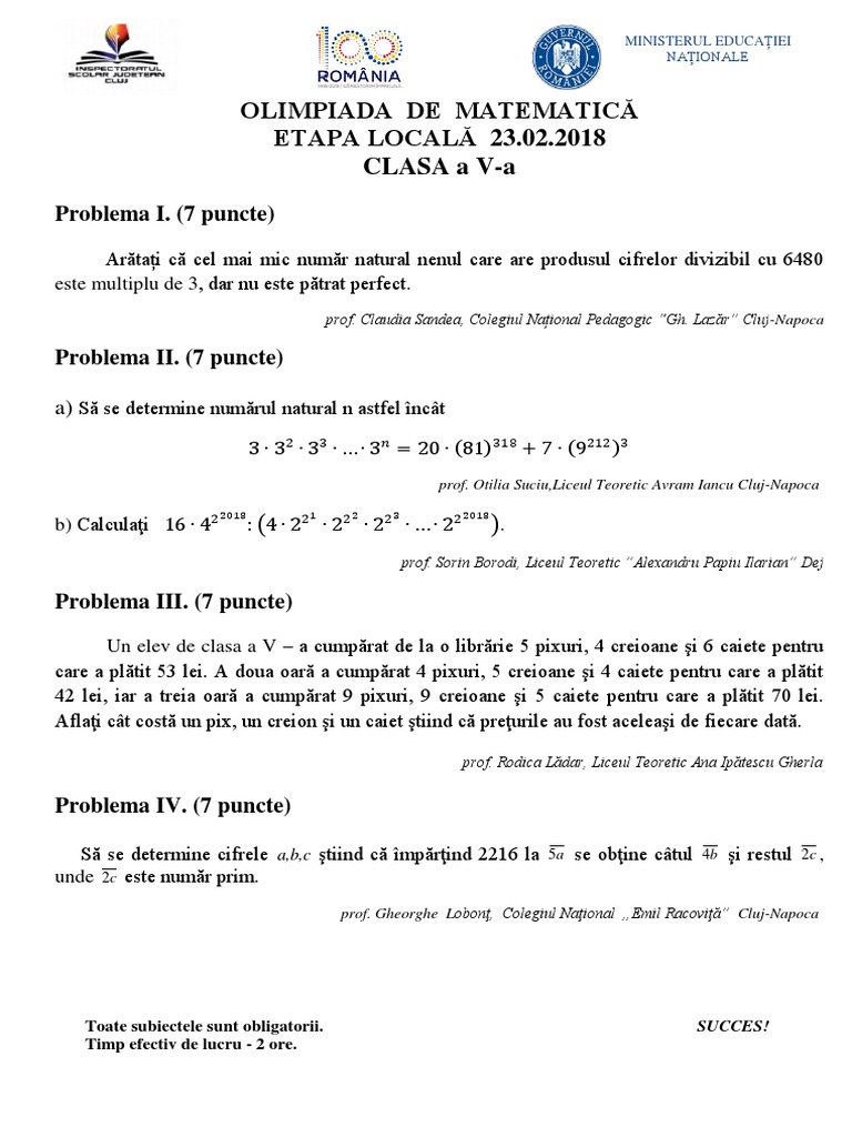 Subiecte Propuse Olimpiada Matematica Clasa A Iv A