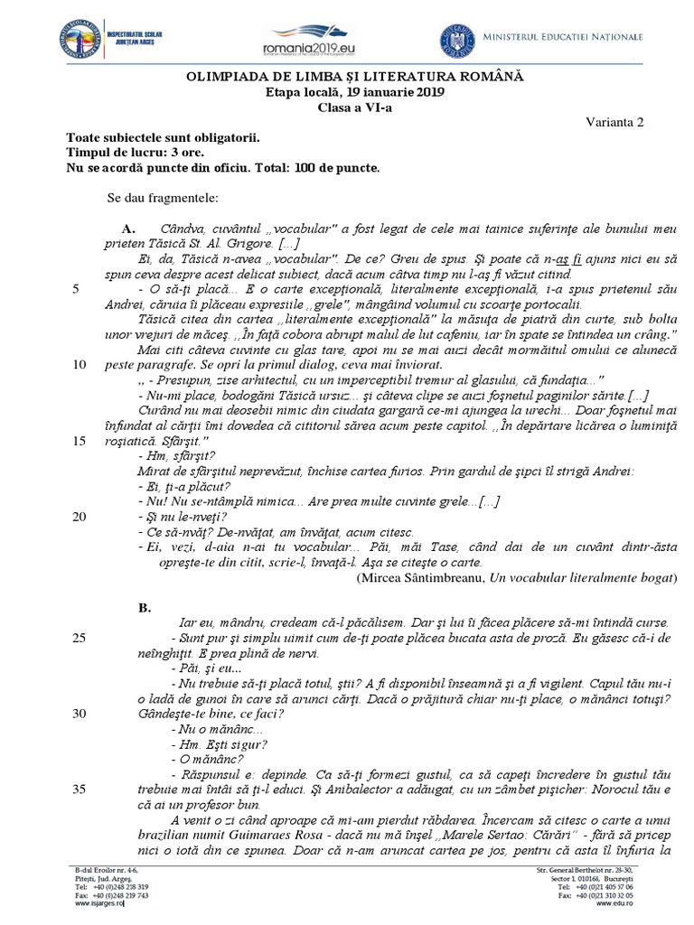 Subiecte Olimpiada Nationala De Limba Si Literatura Romana